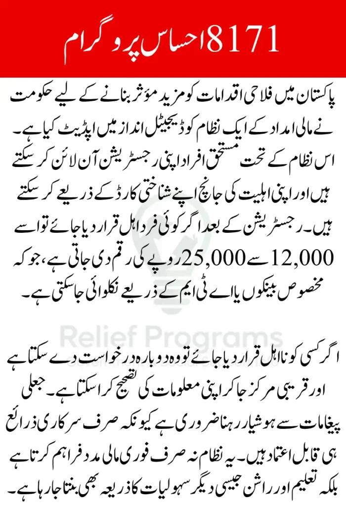 The 8171 Ehsaas Program is a flagship initiative aimed at delivering financial assistance to the most deserving segments of Pakistan’s population. With rising inflation and economic challenges, this program offers timely relief to families struggling to meet their basic needs. The updated registration and verification system ensures that the process is now more accessible, transparent, and efficient than ever before.