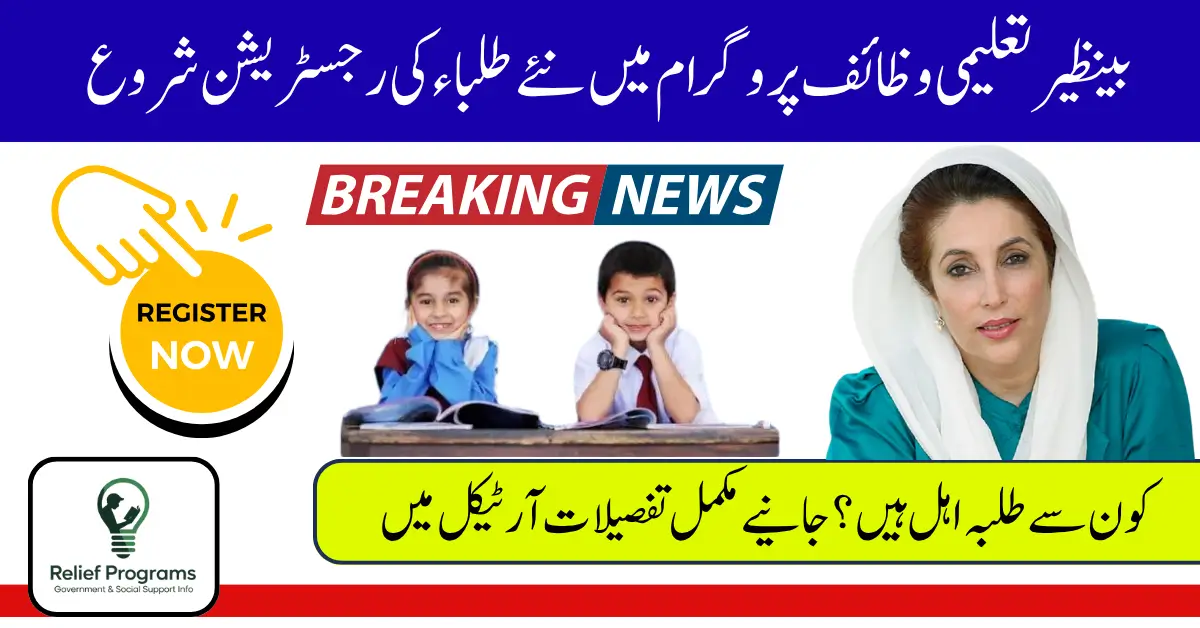 بینظیر تعلیمی وظائف کا نیا رجسٹریشن مرحلہ شروع ہو چکا ہے، جس کا مقصد غریب اور مستحق خاندانوں کے بچوں کو تعلیم کی سہولت فراہم کرنا ہے۔ اس پروگرام کے ذریعے ان بچوں کو مالی امداد دی جاتی ہے جو اسکول میں باقاعدگی سے حاضری رکھتے ہیں اور ان کے والدین BISP کفالت پروگرام کے تحت امداد حاصل کر رہے ہوتے ہیں۔