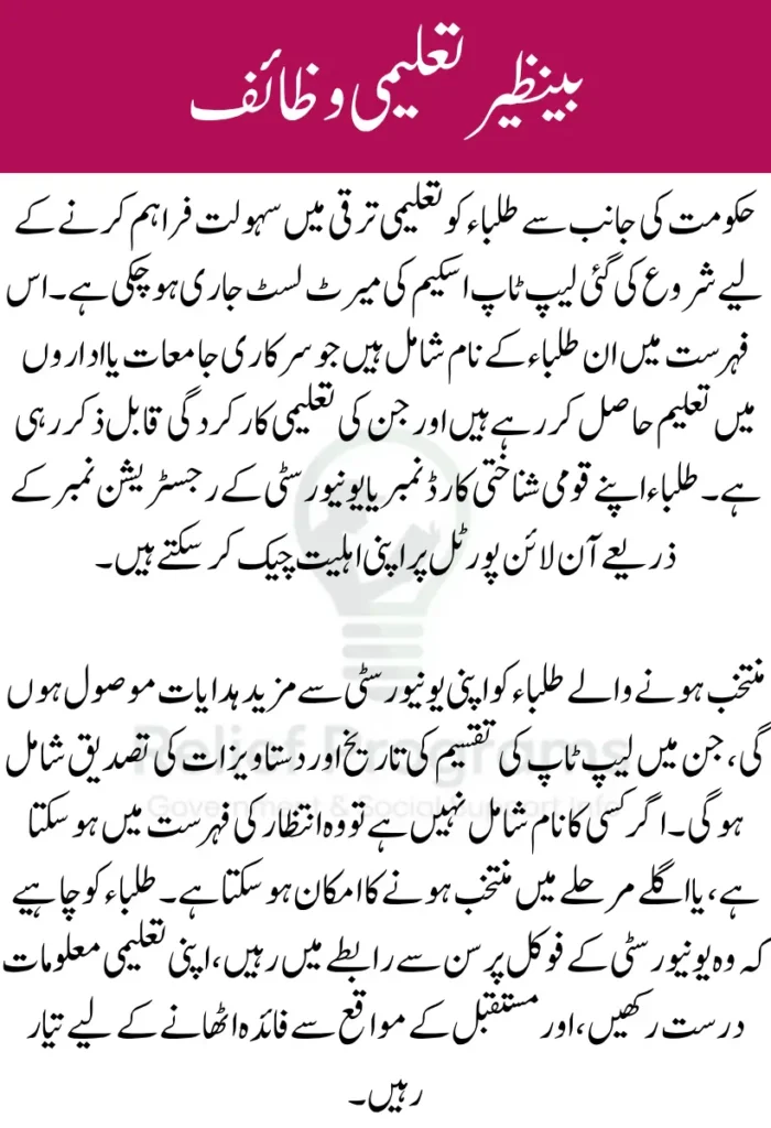 | Program Name | Benazir Taleemi Wazaif |