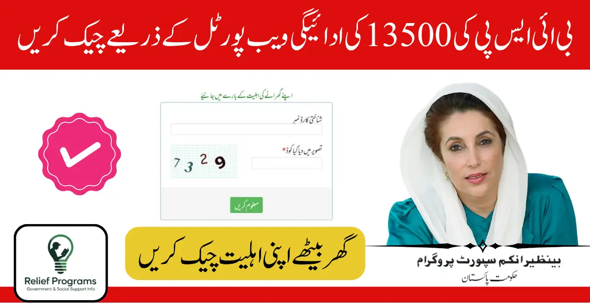 بینظیر انکم سپورٹ پروگرام کے تحت 13,500 روپے کی مالی امداد حکومت پاکستان کی جانب سے ضرورت مند خاندانوں کے لیے جاری کی گئی ہے۔ اس کا مقصد ایسے افراد کی مدد کرنا ہے جو مہنگائی اور غربت کا سامنا کر رہے ہیں۔ اب مستحق افراد گھر بیٹھے آسانی سے اپنی ادائیگی کی حیثیت چیک کر سکتے ہیں۔