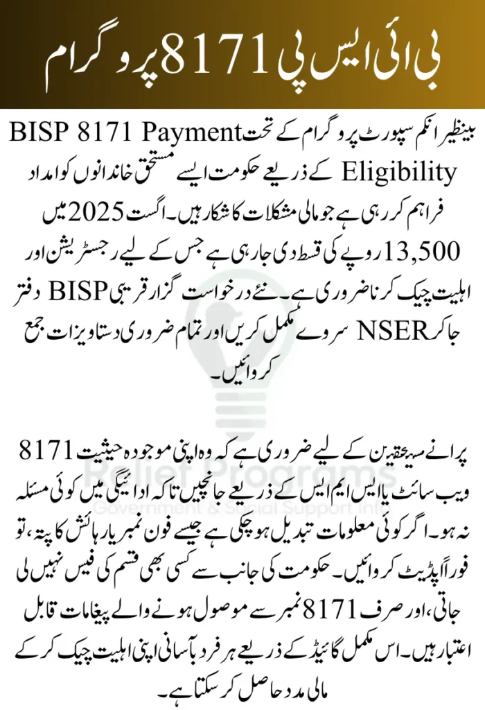 For More Information: 8171 Web Portal Check BISP 13500 Payment Online