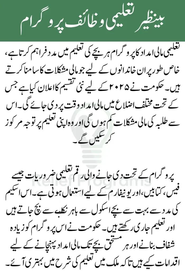 The Role of Benazir Taleemi Wazaif in Promoting Education