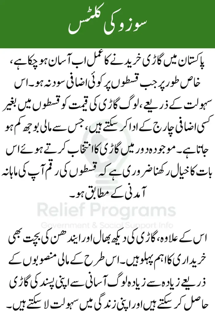 The 0% markup installment plan means you pay the exact price of the car over monthly installments without any additional interest. This is a major change from traditional car loans in Pakistan, which often include high markup rates that increase the overall cost. These plans are typically offered through banks in partnership with Suzuki dealerships and are ideal for those who want to manage payments over time without extra charges.