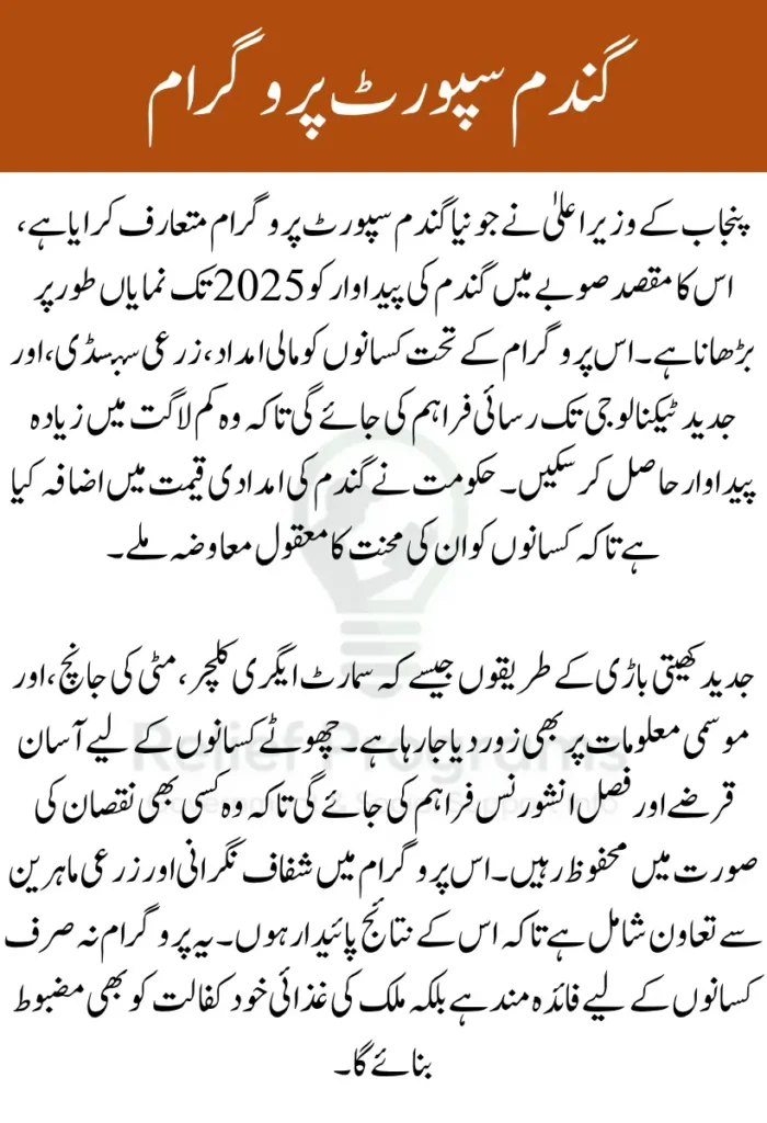 The Wheat Support Program introduced by the Chief Minister of Punjab marks a crucial turning point for the province’s agriculture sector. By focusing on real needs—like fair pricing, access to modern tools, farmer education, and financial relief—this initiative addresses both the current challenges and long-term goals of wheat production.