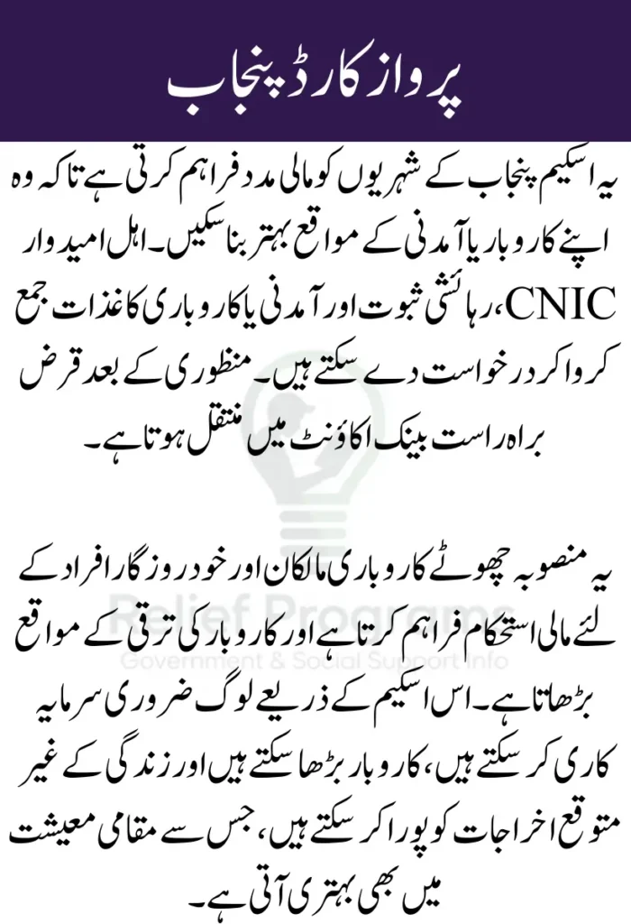 The Parwaaz Card Punjab is a government initiative that provides interest-free loans of up to Rs 300,000 to eligible residents of Punjab. This program is designed to support small businesses, freelancers, and self-employed individuals in improving their income and expanding their operations.