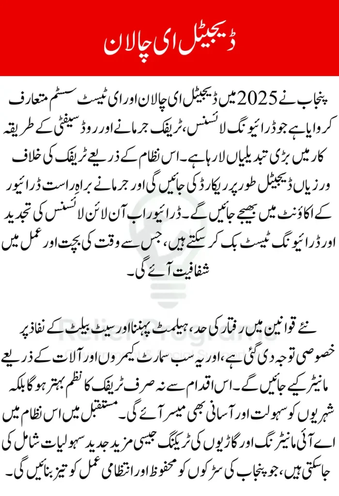Punjab launches digital e-Challan and e-Test system in Punjab marks a major milestone in traffic management. By combining modern technology with updated rules, the province has made fines, licensing, and compliance more transparent, convenient, and efficient. Drivers must familiarize themselves with the digital processes and new regulations to avoid penalties and benefit from the system. This initiative represents a major step toward a smarter, safer, and more efficient traffic management system in Punjab.