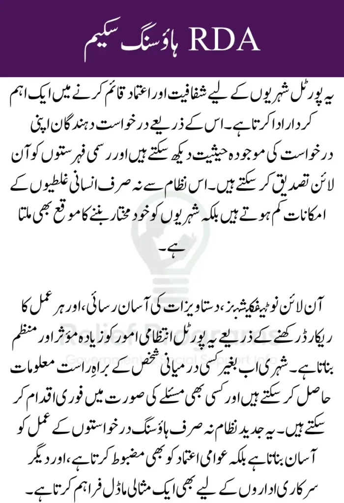 One of the critical issues in housing schemes is ensuring fair distribution of resources. The verification portal addresses this by publicly providing allocation lists and related documents. Citizens can cross-check their names, verify official announcements, and report discrepancies if needed. This digital approach prevents manipulation and ensures that allocations are conducted fairly, supporting the RDA Housing Scheme’s goal of equitable housing distribution.